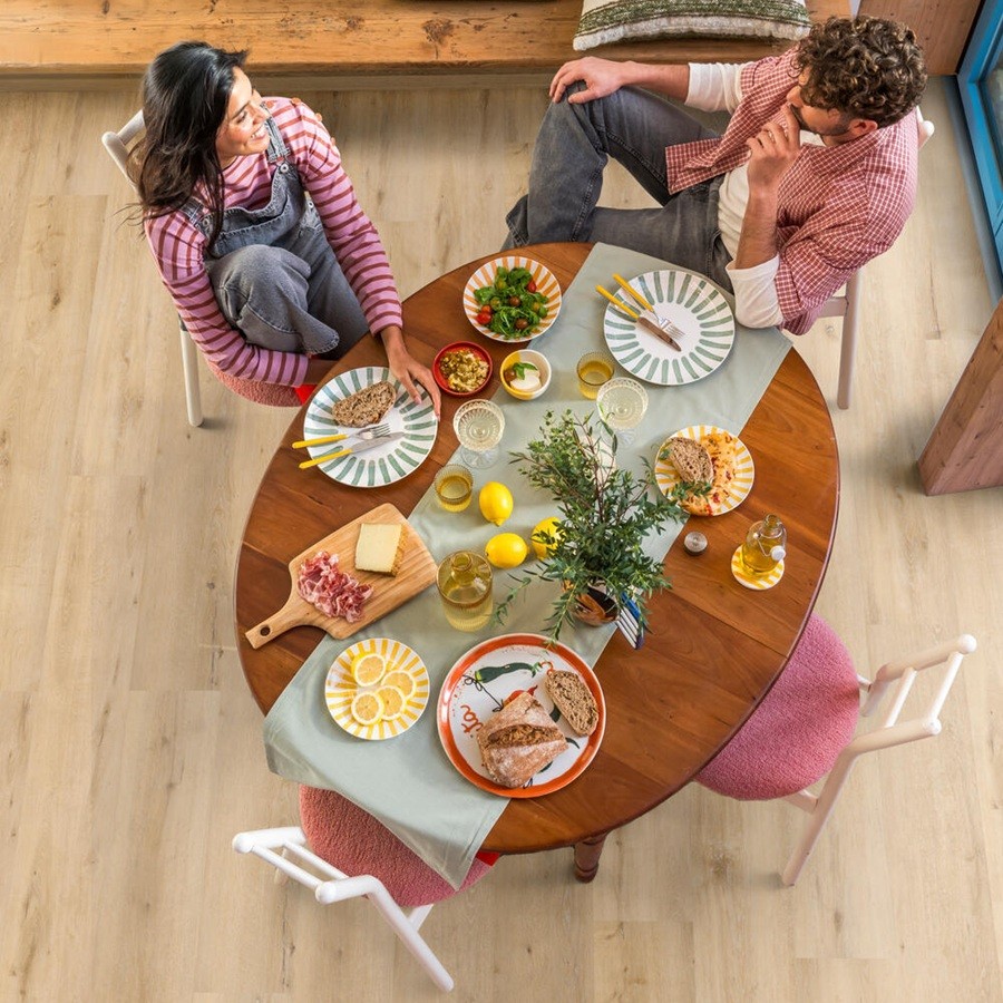 De veelzijdigheid van de Allegra-plankvloer is een groot voordeel. De BerryAlloc Spirit Soul Plank Gluedown Allegra is geschikt voor vochtige ruimtes, waardoor hij probleemloos kan worden toegepast in keukens, badkamers of bijkeukens. Bovendien is de vloer compatibel met vloerverwarming, wat zorgt voor een aangenaam warm gevoel onder de voeten en een gelijkmatige warmteverdeling door de ruimte. Zo combineert de vloer natuurlijke elegantie met optimaal comfort, ongeacht het seizoen.