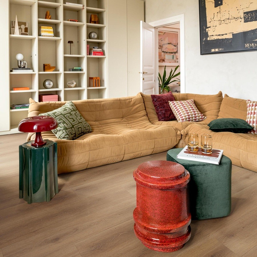 Het onderhoud van de Terra-plankvloer is eenvoudig en efficiënt. De gesloten, slijtvaste toplaag voorkomt dat vuil en vocht in het materiaal trekt, waardoor regelmatig stofzuigen en af en toe licht dweilen voldoende is om de vloer in topconditie te houden. Hierdoor is de vloer ideaal voor gezinnen, huisdieren en drukbezochte ruimtes, waar praktisch onderhoud en hygiëne belangrijk zijn.
