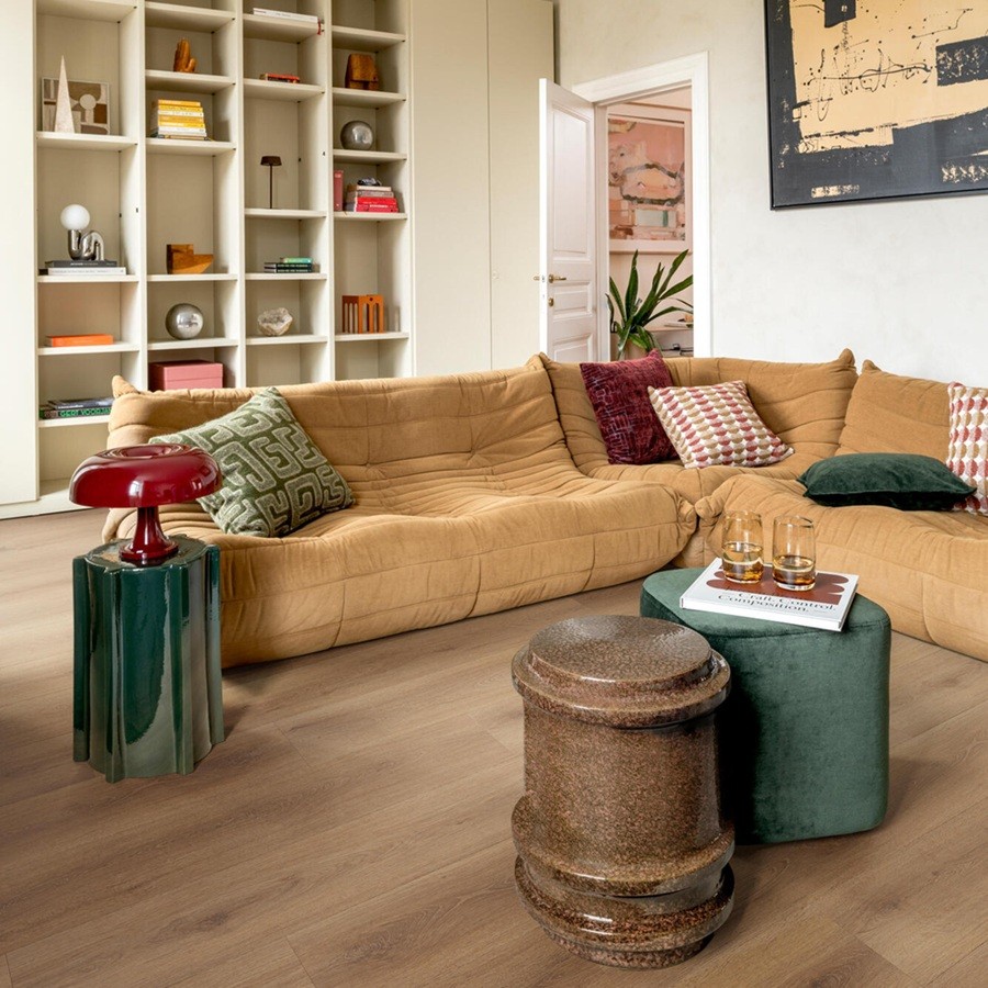 De veelzijdigheid van de Terra-plankvloer is een groot voordeel. De vloer is geschikt voor vochtige ruimtes, waardoor hij zonder problemen kan worden toegepast in keukens, badkamers of bijkeukens. Daarnaast is de vloer compatibel met vloerverwarming, wat zorgt voor een aangenaam warm gevoel onder de voeten en een gelijkmatige warmteverdeling door de ruimte. Zo combineert de vloer een natuurlijke, elegante uitstraling met optimaal comfort, ongeacht het seizoen.