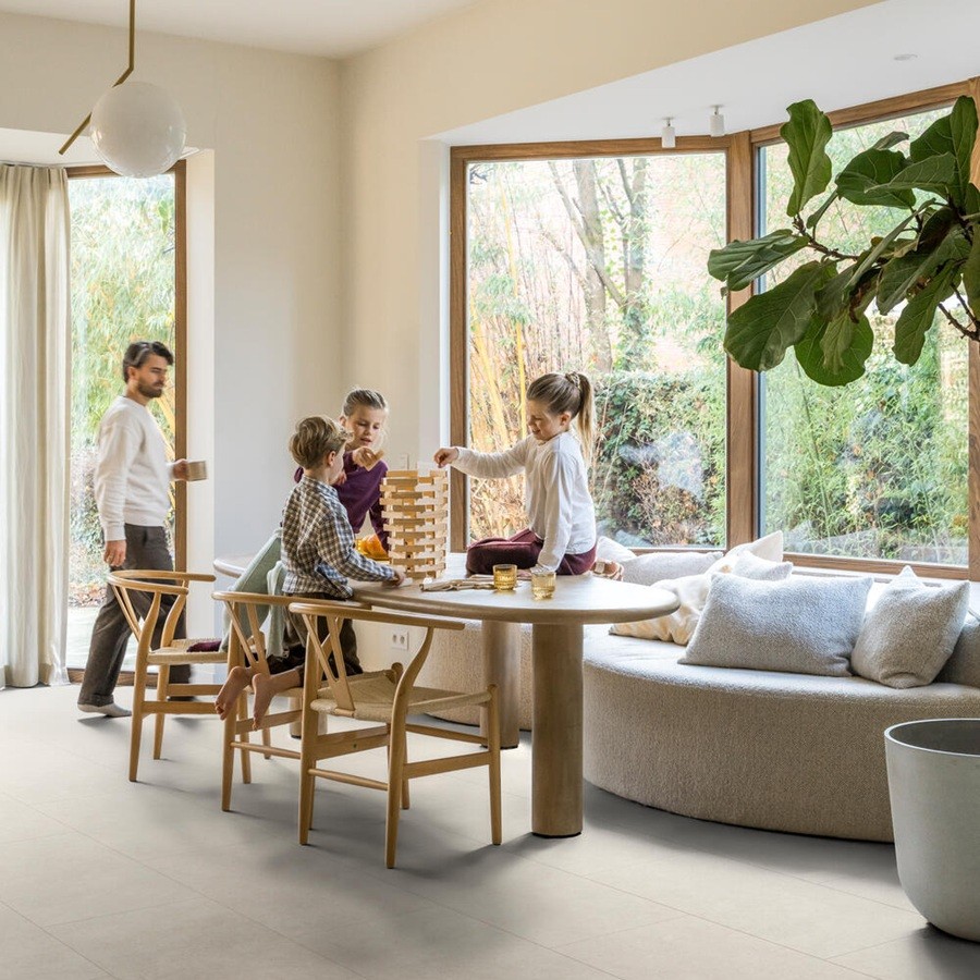 De veelzijdigheid van de Fiori-tegelvloer is een groot voordeel. De BerryAlloc Spirit Soul Tiles Click Fiori is geschikt voor vochtige ruimtes, waardoor hij probleemloos kan worden toegepast in keukens, badkamers of bijkeukens. Bovendien is de vloer compatibel met vloerverwarming, wat zorgt voor een aangenaam warm gevoel onder de voeten en een gelijkmatige warmteverdeling door de ruimte. Zo combineert de vloer natuurlijke elegantie met optimaal comfort, ongeacht het seizoen.