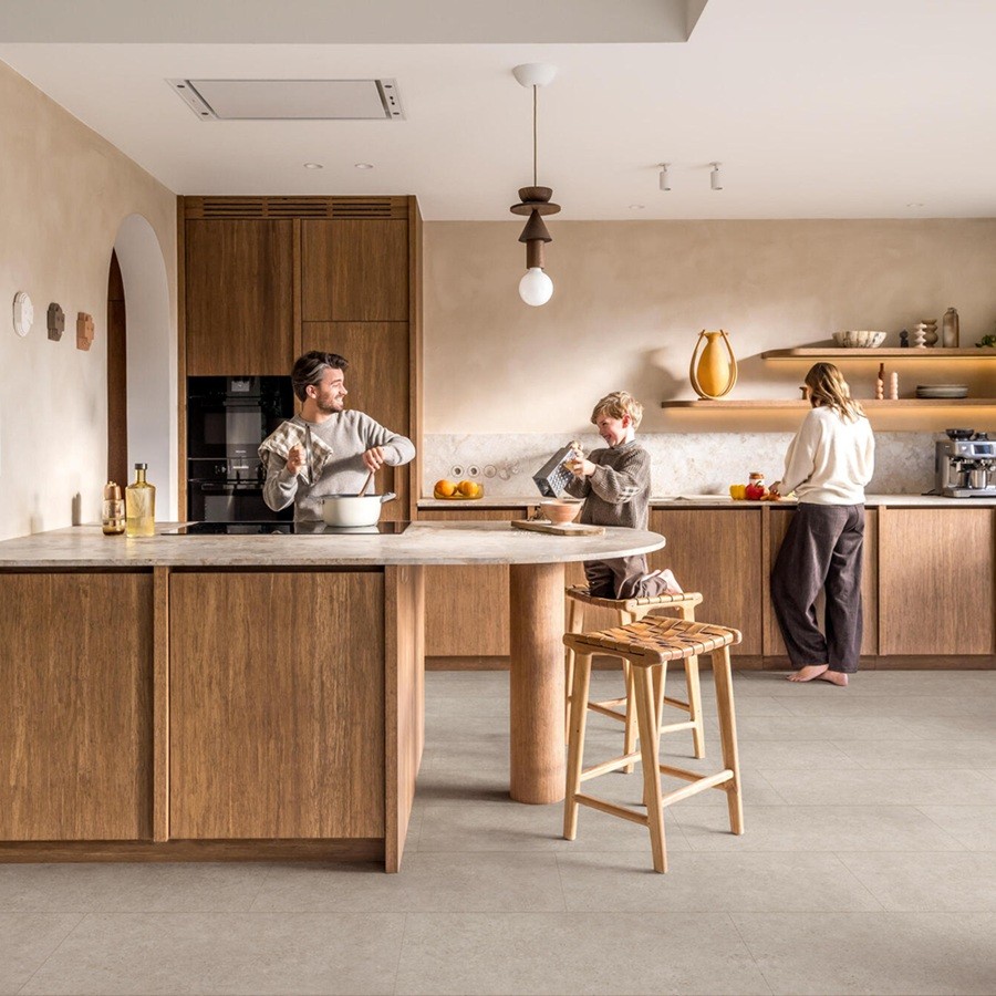 De royale afmetingen van 914 mm lengte en 457,2 mm breedte geven de Remi-tegels een opvallend en eigentijds karakter en creëren een rustige, uniforme uitstraling. Grote tegels dragen bij aan een ruimtelijk effect en versterken het gevoel van openheid en licht in de ruimte. De rondomlopende micro-voeg (V-groef) omlijst iedere tegel subtiel en benadrukt het individuele tegelpatroon, waardoor een realistische structuur en een natuurlijke steenlook ontstaat. Het resultaat is een vloer die diepte, textuur en een gevoel van continuïteit toevoegt, waardoor een luxe en tijdloze uitstraling ontstaat die iedere leefruimte verrijkt.