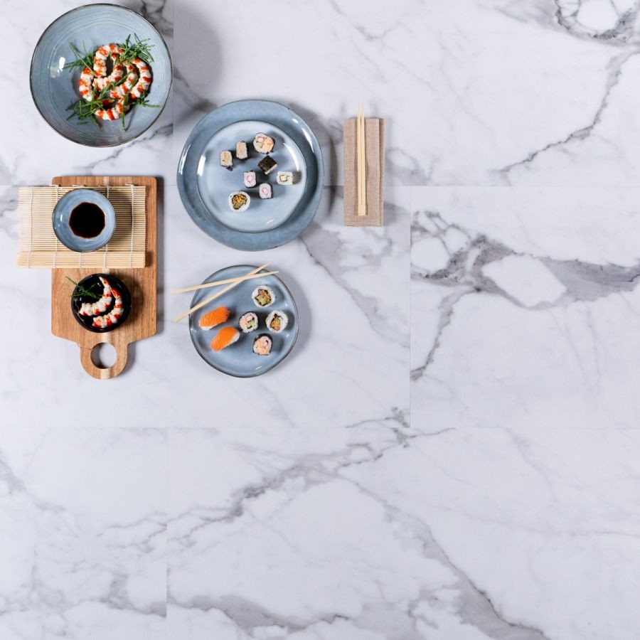 De planken zijn voorzien van de innovatieve Droplock / dropdown klikverbinding, waardoor het leggen van de vloer eenvoudig, snel en zonder gereedschap kan gebeuren. Deze kliktechniek zorgt voor een stabiele, vlakke vloer en voorkomt verschuiven of scheve naden. De Micro 4V-v-groef accentueert het tegelmotief subtiel, waardoor elke tegel een verfijnde en luxueuze uitstraling krijgt. Deze kleine V-groef versterkt het lijnenspel en de textuur van de vloer, waardoor het tegelpatroon elegant, strak en professioneel oogt.