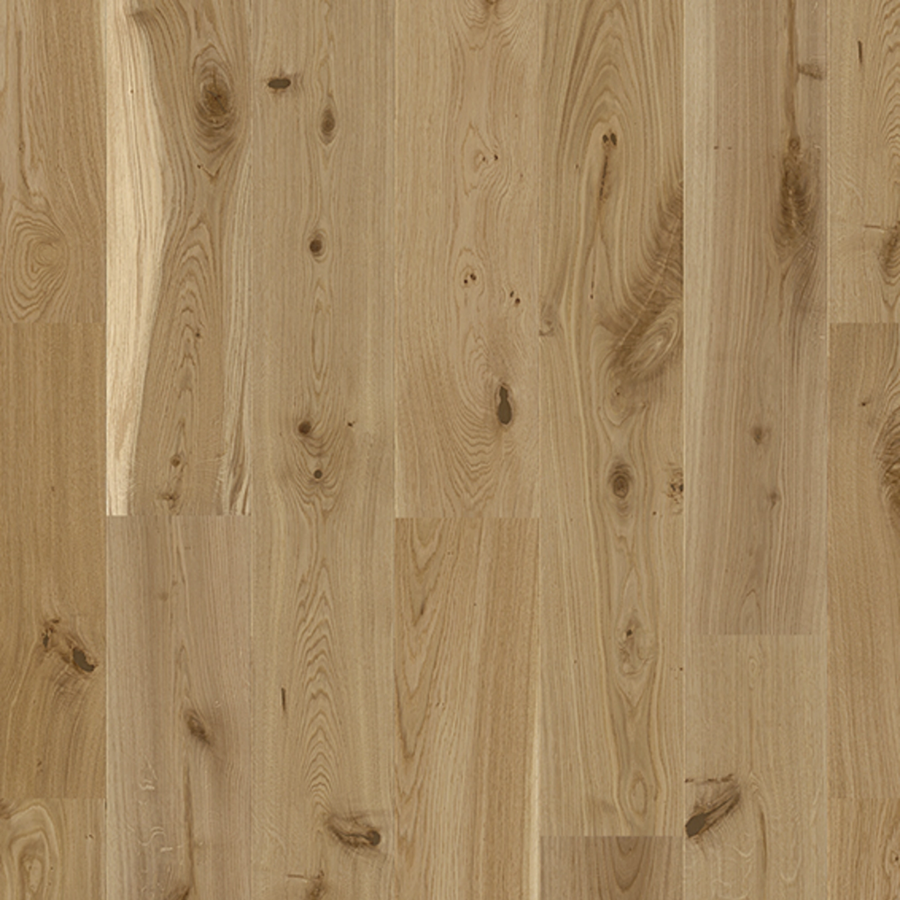 De Calgary-collectie van Joka staat bekend om haar hoogwaardige afwerking en natuurlijke karakter. De MIX-sortering zorgt voor een levendig, maar harmonieus beeld waarin noesten en natuurlijke houtstructuren mooi in balans zijn. Dankzij het geborstelde oppervlak komt de nerfstructuur van het eikenhout extra sterk naar voren. Dit geeft de vloer niet alleen meer diepte en karakter, maar zorgt ook voor een aangename, voelbare textuur onder de voeten.