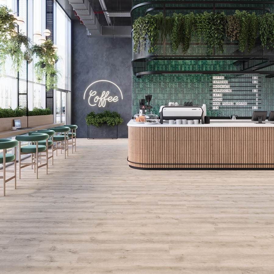 De kleur Hazy Oak valt op door zijn subtiele, vergrijsde tinten die elegantie en rust in een interieur brengen. De natuurlijke houtstructuur en de authentieke nerven geven de vloer een realistische uitstraling die nauwelijks van een echte houten vloer te onderscheiden is. Deze zachte, neutrale houtlook past bij uiteenlopende interieurstijlen, van modern en minimalistisch tot landelijk en klassiek. Het resultaat is een vloer die warmte, gezelligheid en karakter toevoegt aan woonkamers, keukens, hallen, kantoren en commerciële ruimtes.