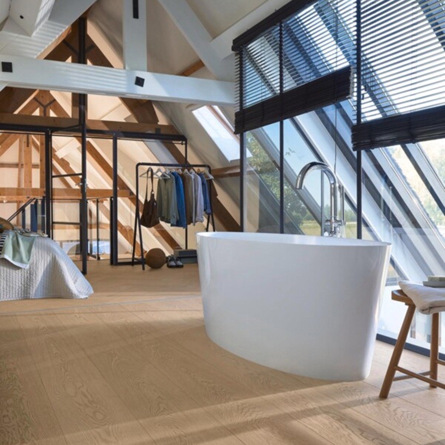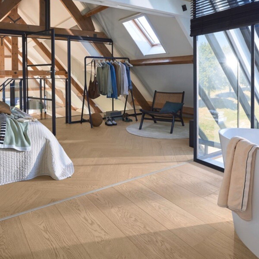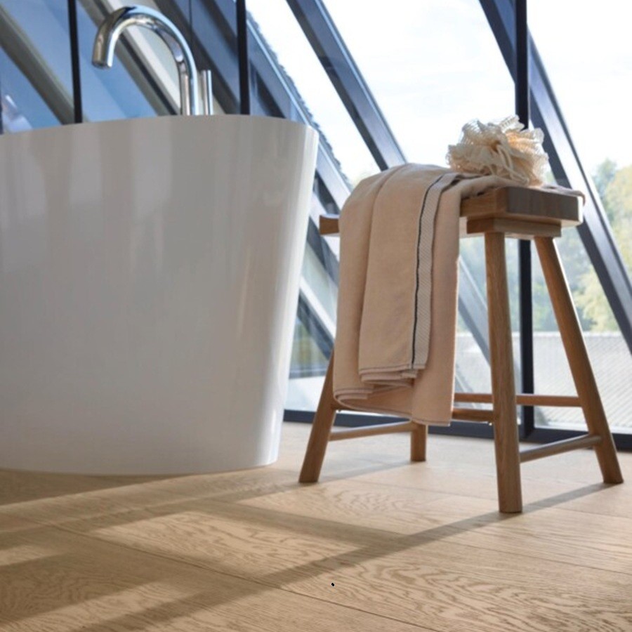 De royale planken van deze vloer zorgen voor een luxueus en ruimtelijk vloerbeeld. Met een lengte van 2.200 mm en een breedte van 270 mm ontstaat een vloeiend en harmonieus patroon dat ruimtes optisch vergroot en een gevoel van elegantie en openheid geeft. De royale afmetingen van de planken benadrukken de natuurlijke houtstructuur en creëren een doorlopend, rustig vloerbeeld dat zowel in moderne als klassieke interieurs prachtig tot zijn recht komt. De dikte van 11 mm biedt stabiliteit en stevigheid, waardoor de vloer comfortabel aanvoelt en bestand is tegen intensief dagelijks gebruik.